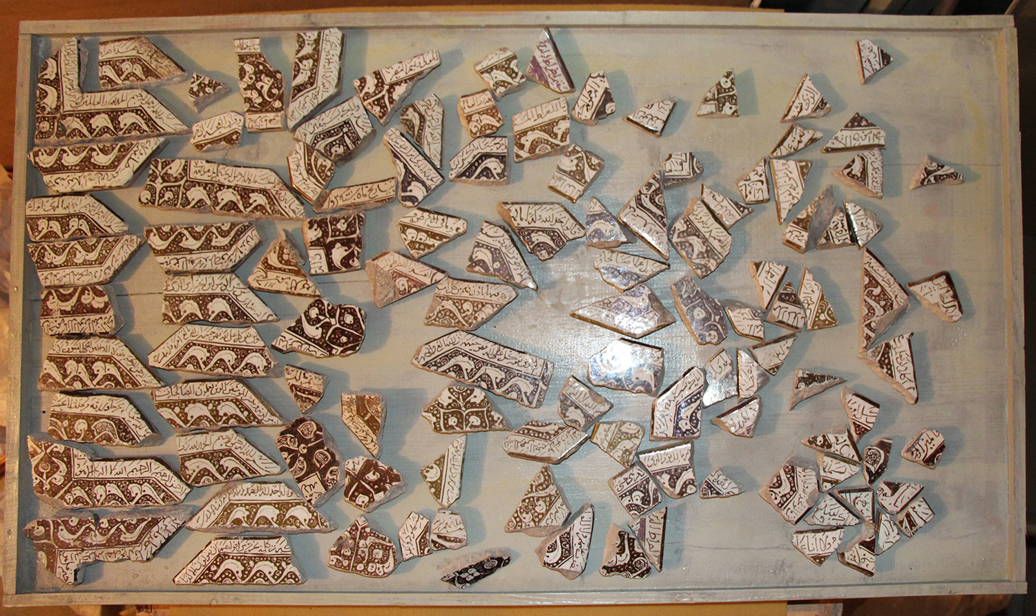 - A similar misorientation persists in the Victoria and Albert Museum’s display of the spandrels from the mihrab of the tomb of ʿAbd al-Samad in Natanz. See Leone, “New Data on the Luster Tiles,” fig. 16–18. ↩