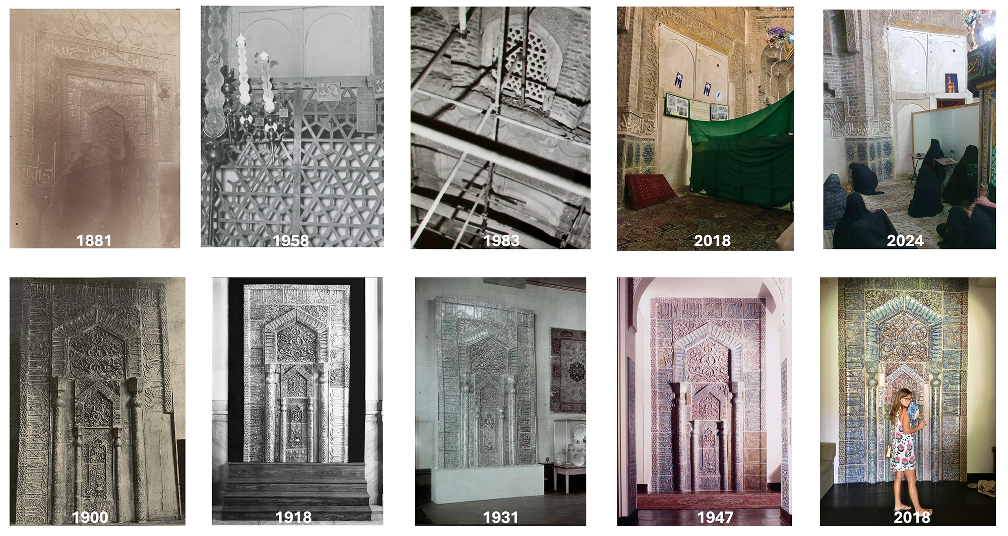 The historiography of the Emamzadeh Yahya’s mihrab inspires a self-reflexive audit on the field of Persian art and architectural history. While the mihrab’s art historical data and significance are well known, it has often been mired in confusion, simplification, exclusion, and isolation, both in English- and Persian-language scholarship. Much of this boils down to access, which has always shaped scholarly engagement. Generally speaking, those who could study the mihrab firsthand focused on it as an isolated artwork, while those who had access to the shrine examined the building independently. Consequently, each side’s understanding of the opposite context remained incomplete or outdated. A 1978 photograph of the tomb—repeated multiple times in museum displays and academic presentations—became the dominate view of the shrine outside of Iran, while scholars inside Iran continued to recycle dated information on the mihrab, including a 1918 photograph.