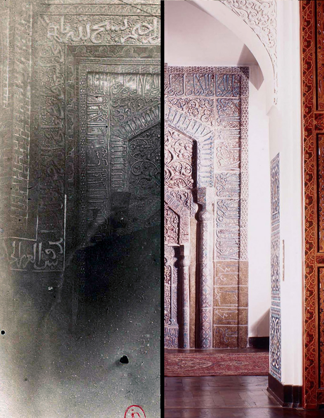 This historiography has underscored how much more there is to learn about the Emamzadeh Yahya’s mihrab and how many ways it can be seen and re-seen. During this study, some major physical alterations to the mihrab were illuminated through repeated close looking with fresh eyes, even at a distance. Moreover, the mihrab’s visual archive was expanded far beyond Jane Dieulafoy’s 1881 photograph of it in situ, thus revealing its steady transformations over six decades (fig. 279). These photographs capture the mihrab in varying physical states: tiles missing, tiles jumbled, surfaces damaged, and the ensemble ostensibly ‘completed’ with various substitutes.