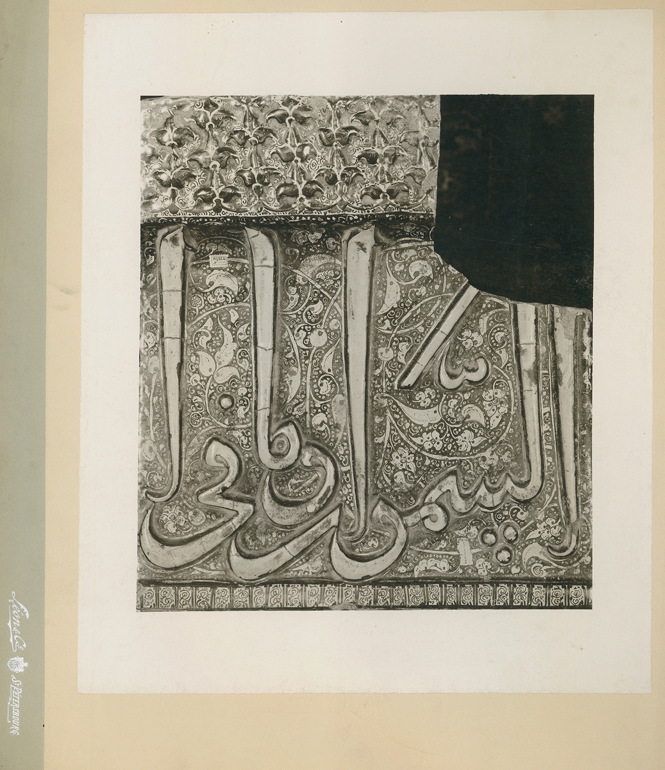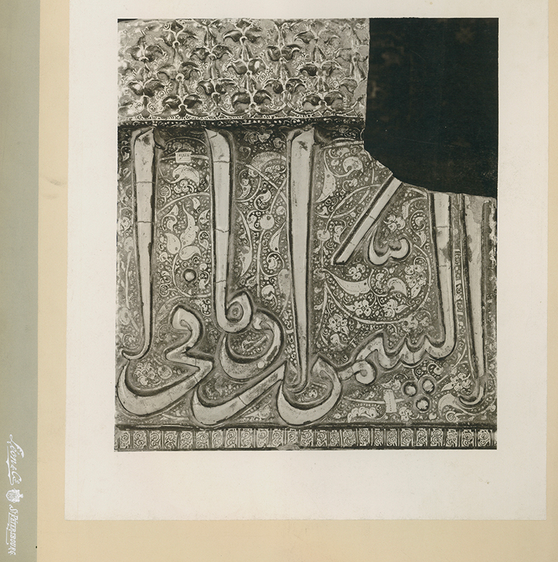 On 16 April, the k. k. Österreichisches Museum für Kunst und Industrie (The Imperial Royal Austrian Museum of Art and Industry; today’s MAK) acquires a broken tile from the inner border of the Emamzadeh Yahya’s mihrab, which is still in situ in the tomb (fig. 13). The tile is part of an acquisition of twenty-nine tiles from “Fürst Urussoff” (Prince Urussoff), and the group also includes six luster tiles attributed to the dado of the tomb of Emamzadeh Yahya (five stars and one cross; KE 3570-13-18). The acquisition is funded by the Ministry for Trade (Handelsministerium), which suggests that the tiles be displayed as models (of design) and stipulates that they remain in the museum as property of the Ministry for Trade. The “Fürst Urussoff” in question might be Prince Vladimir Pavlovich Urusov (d. 1880), a Russian diplomat who served in Vienna as first secretary between at least June 1874 and January 1876. It is possible that he obtained the tiles during his diplomatic mission in Tehran prior to his transfer to Vienna.9