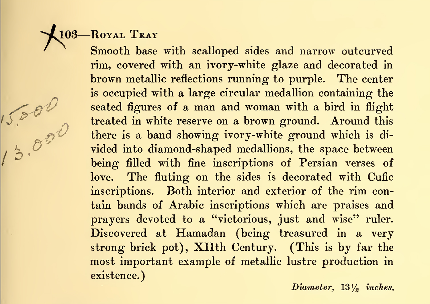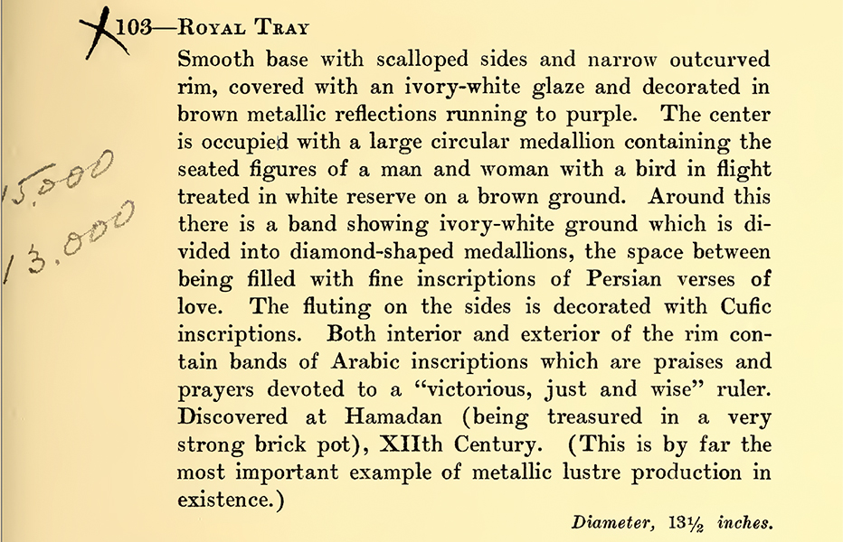 - The Persian Art Gallery, Catalogue d’Exposition d’Art Musulman, no. 50, 14–15. ↩