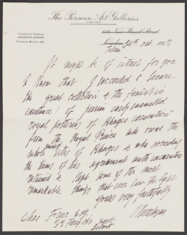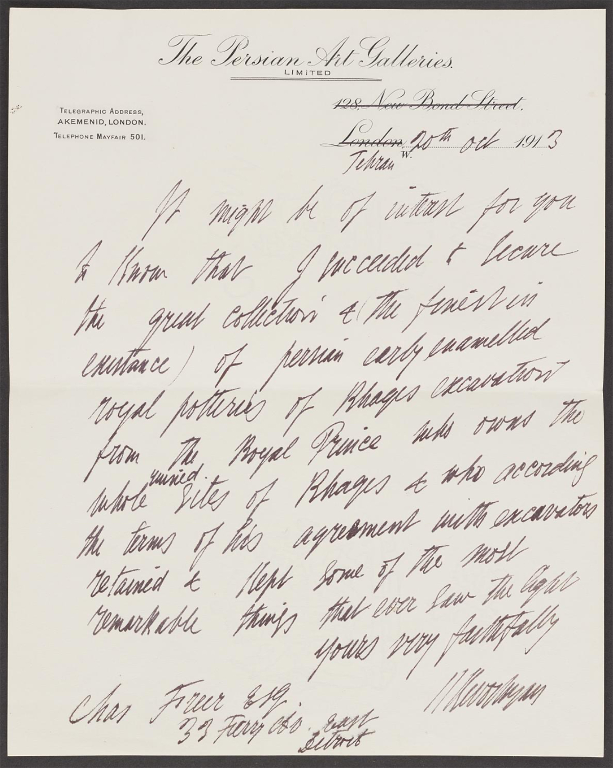 - Letter from Hagop Kevorkian, London, to Charles Freer, Detroit, 25 August 1913, 2, NMAAA, FSA A.01. ↩