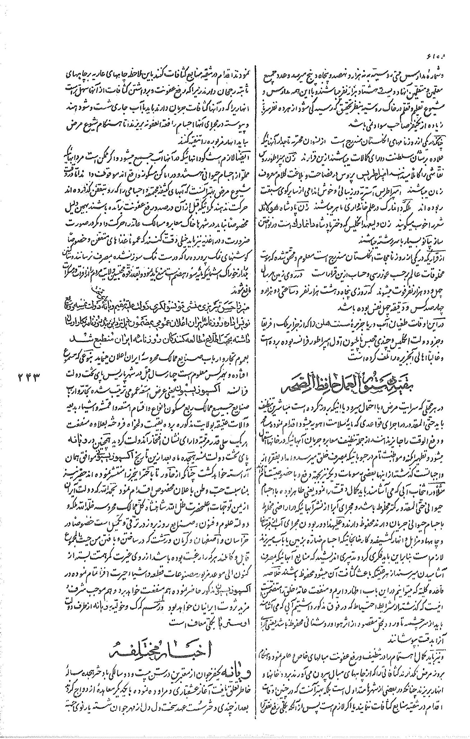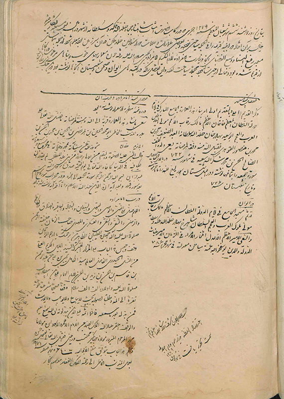 - Moezzi and Khosronejad, Haz kardīm, 111–41. The volume includes nine letters: eight addressed to Dust-Mohammad Khan Moʿayyer al-Mamalek in Tehran and one from Iranian financier Haj Mohammad Hossein Amin al-Zarb (d. 1932) to Dust-ʿAli Khan regarding his debt. Among the eight letters to Dust-Mohammad Khan, five are from his son, Dust-ʿAli Khan Moʿayyer al-Mamalek, and primarily describe his trip, report on purchases, and request funds from his father; two are from Amanollah Mirza Jahanbani, reporting on the behavior and activities of the young travelers; and one is from Mirza Hasan Khan Mostowfi al-Mamalek, commenting on purchases and recounting his journey to England to participate in Queen Victoria’s (d. 1901) funeral. ↩
