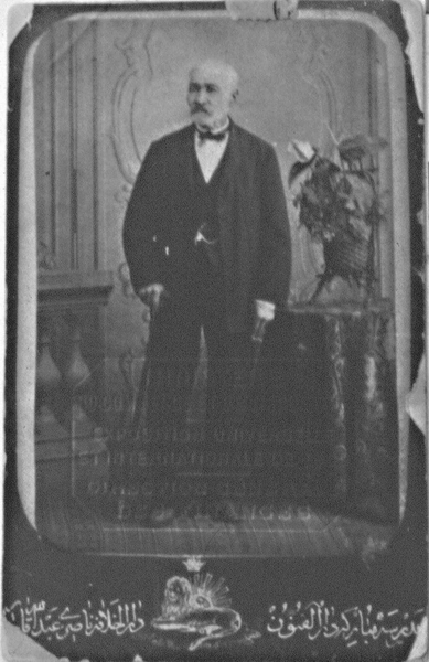 Individuals approved to show materials by application to the French Ministry of Commerce, Industry, Posts, and Telegraphs include Iranian officials like Mirza Hossein Khan Mostowfi Qavam Daftar and Hossein Quli Khan, photographer Antoine Sevruguin (see fig. 33), and dealers like Dikran Kelekian (d. 1951) (fig. 46).55 The Parisian dealer Clotilde Duffeuty, to whom we shall soon return, gives tours explaining the displays.