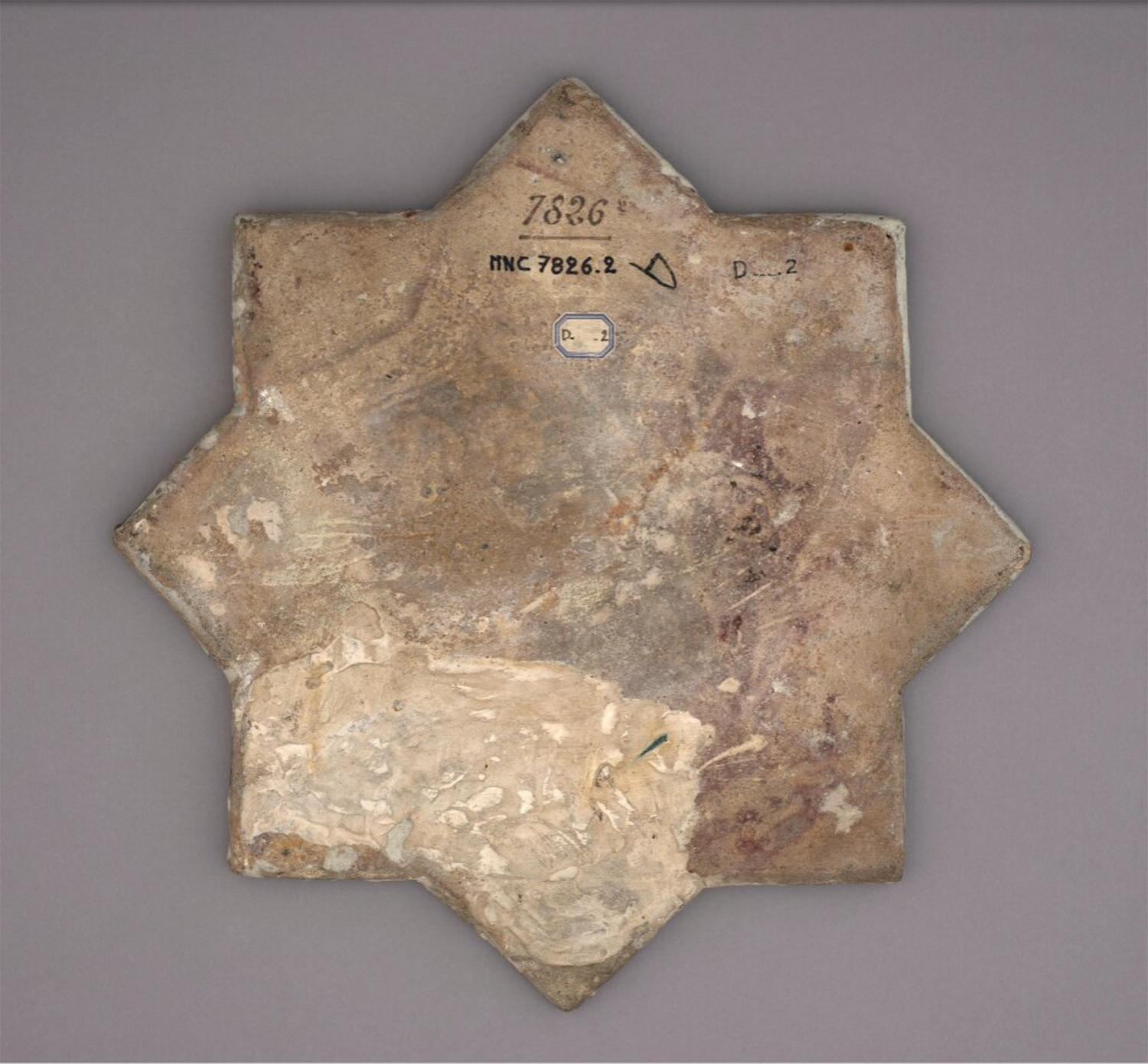 In May 1878, French diplomat Émile-Charles-Henri Bernay (d. 1908) sends a batch of seven star and cross tiles that can be attributed to the Emamzadeh Yahya to the National Museum of Ceramics in Sèvres (figs. 23–24). The tiles are assigned the number 7826, and a March 1880 note ascribed to Bernay in the museum’s inventory book records their provenance: