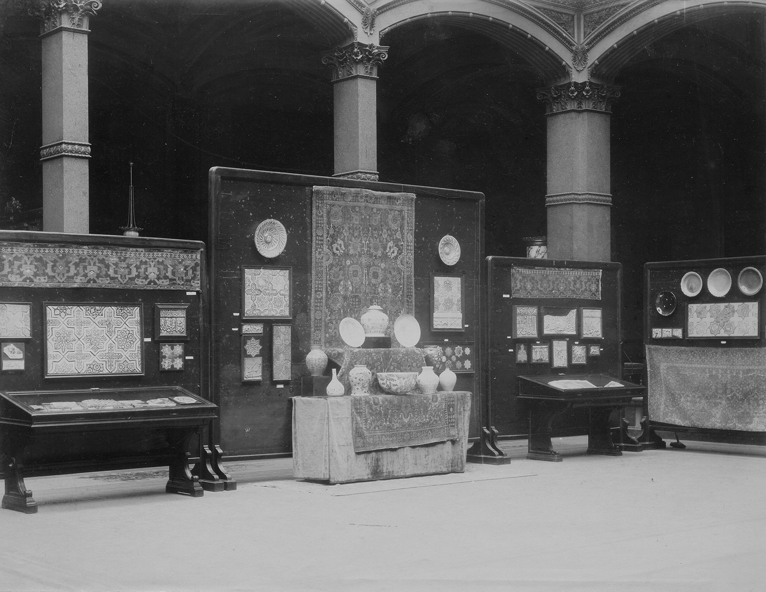 In April 1876, many of the over two thousand ‘articles’ Murdoch Smith acquired in Iran are displayed in South Kensington’s new Persian Court, located in the North Cloister of the museum (see this plan). The galleries are heralded in the press as “a very important addition to the museum,” and Murdoch Smith is praised for assembling a collection “illustrating every section of Persian art and art industry, ancient and modern, and, as a whole, unrivaled in Europe.”22 Two small books are published, including Smith’s Persian Art (see 6:20 in this film), which likewise credits the buying agent as well as his main source: