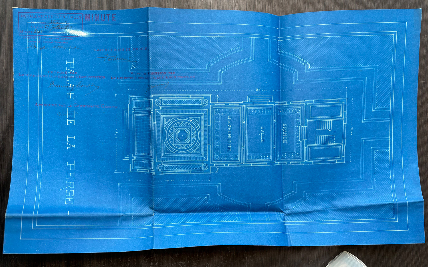 The mihrab does not appear to be exhibited, for had it been displayed, it would have garnered immense attention and been mentioned in one of the many accounts of the Persian pavilion (for example). Sarre will later record that he saw it in an unassembled state (“in noch nicht wieder aufgebautem Zustand”) in Paris in 1900, and Hagop Kevorkian will later maintain that Mozaffar al-Din Shah (r. 1896–1907) forbade Mostowfi al-Mamalek from displaying it (jump ahead to 1913).56