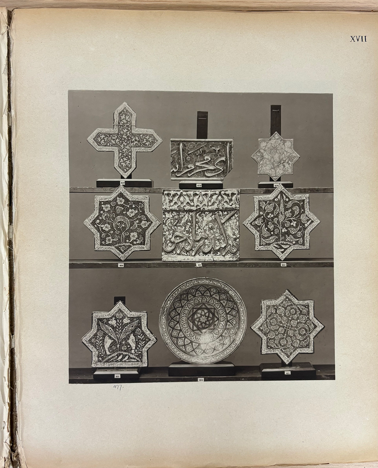On 23 March, the twenty-nine tiles acquired by the Imperial Royal Austrian Museum of Art and Industry in 1875, including the broken tile from the inner border of the Emamzadeh Yahya’s mihrab, officially enter the museum as part of an Übernahme (formal handover) from the Ministry for Trade.39 It is likely that the luster star and cross tiles attributed to the Emamzadeh Yahya had been exhibited a few years earlier (1884) in a ceramic exhibition at the Orientalischen (Oriental) Museum in Vienna.40 The mihrab’s broken tile does not appear to be listed in the catalogue and may not have been displayed. 41