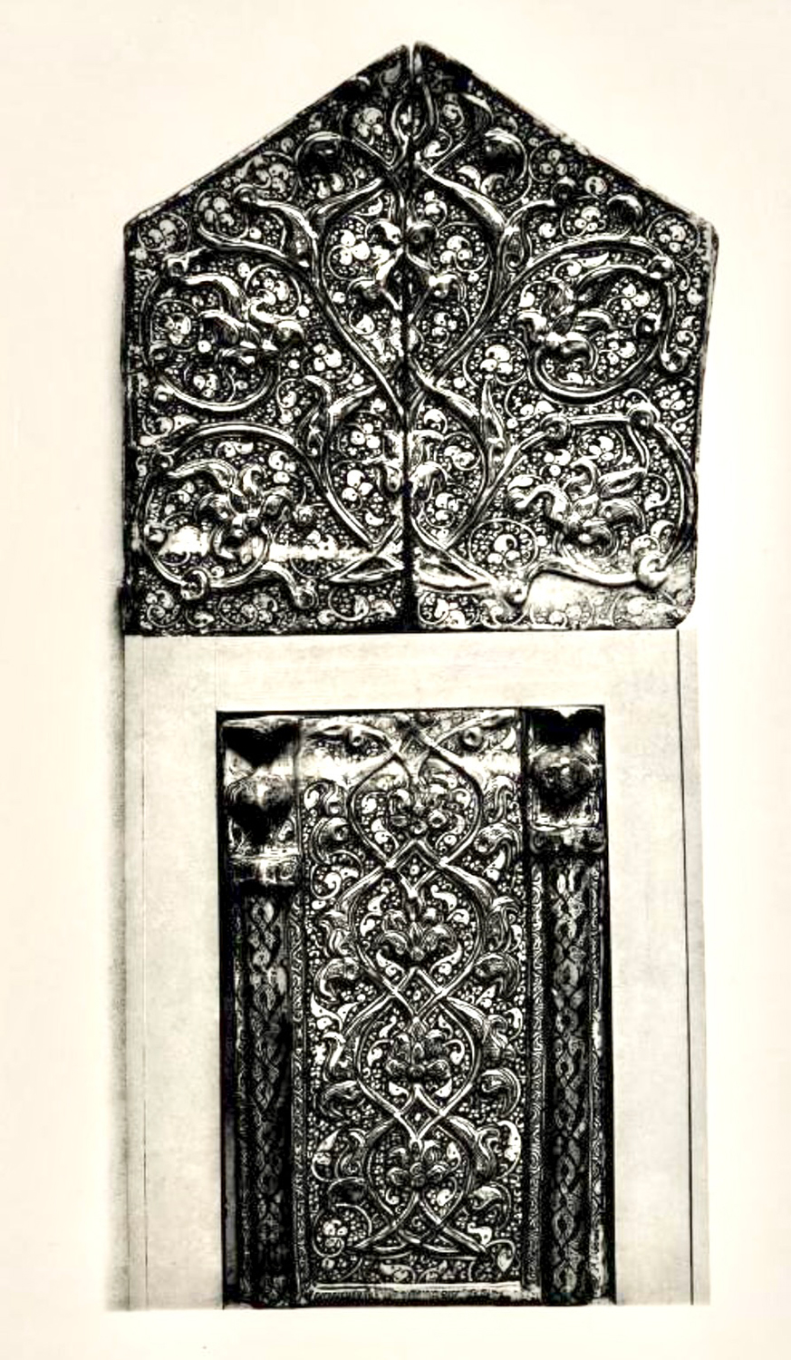 - The Persian Art Galleries, Catalogue of Mohammedan Art, no. 137. This door was also included in the third exhibition in 1911 (see vid. 5). In 1919, Kevorkian sold it to the Penn Museum (NEP41). ↩