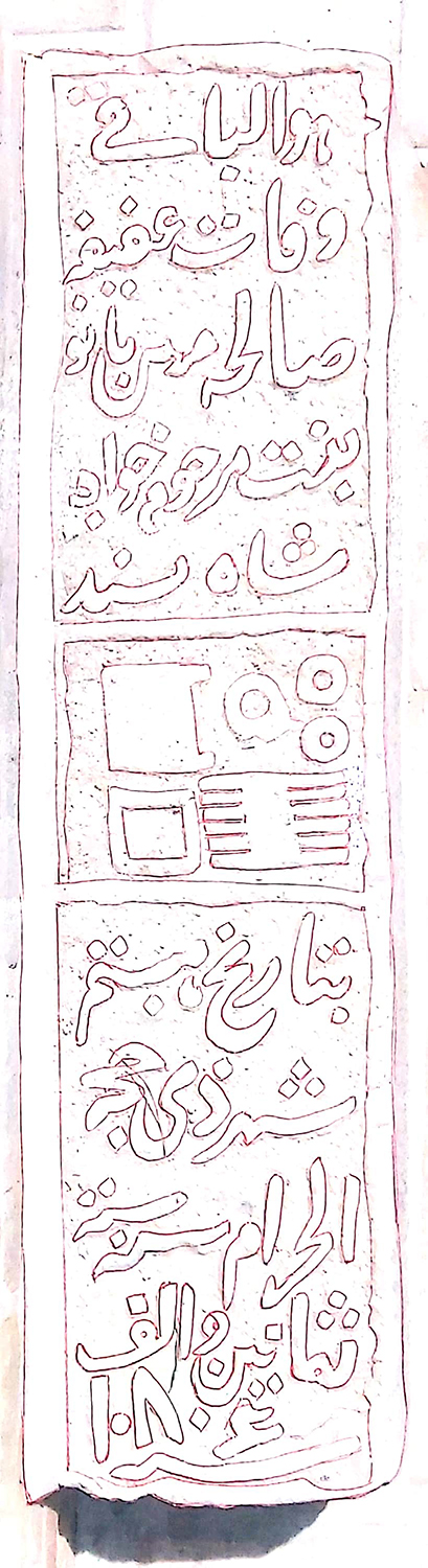 ۳. سنگ گور منقور به اقلام روزمره، مورخ ذیالحجه ۱۰۸۶ق.