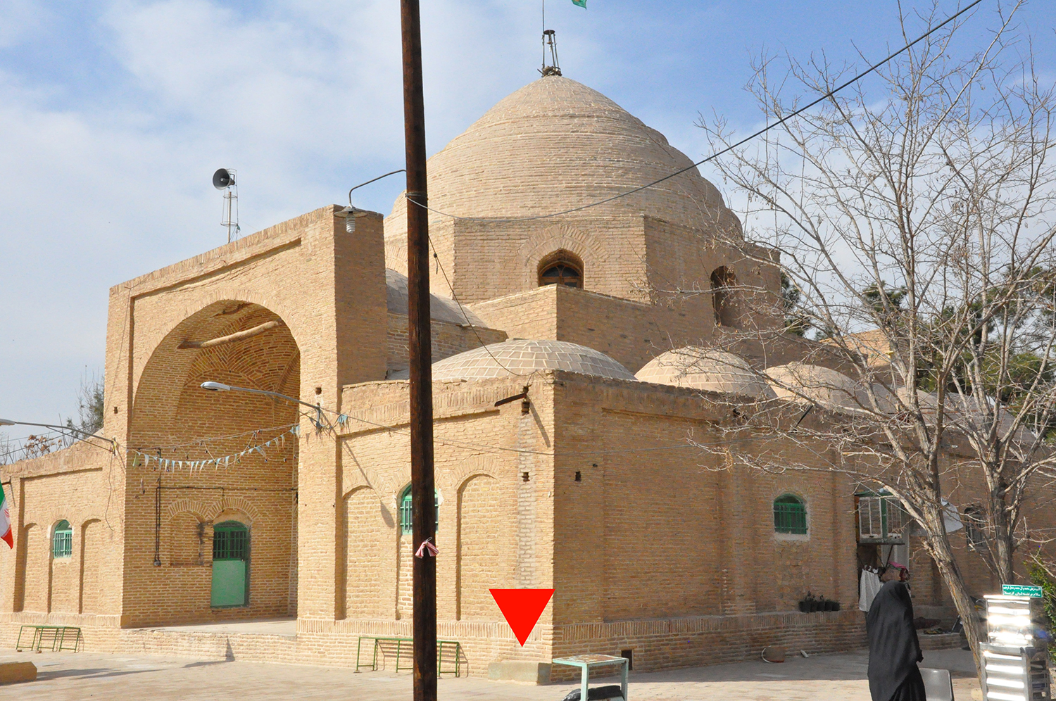 این سنگ گور به ابعاد ۳۷ در ۵۳ سانتیمتر است و به صورت ایستاده در نمای شمالی، سمت راست ایوان درِ ورودی اصلی بنا (ایوان شمالی) کار گذاشته شده است (ت. ۵). کتیبهی این سنگ به خط ثلث و با حروف برجسته است. بخش پایین کتیبه که حاوی نام متوفی و احتمالا تاریخ وفات بوده از بین رفته است. متن بخش حاشیهی کتیبه حاوی صلوات چهارده معصوم است که بخشهایی از ابتدا و انتهای آن از بین رفته است. با توجه به فرم کتیبه و نوع خط میتوان آن را به سدهی یازدهم هجری قمری نسبت داد (ت. ۶-۷).